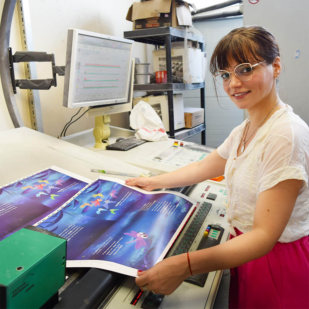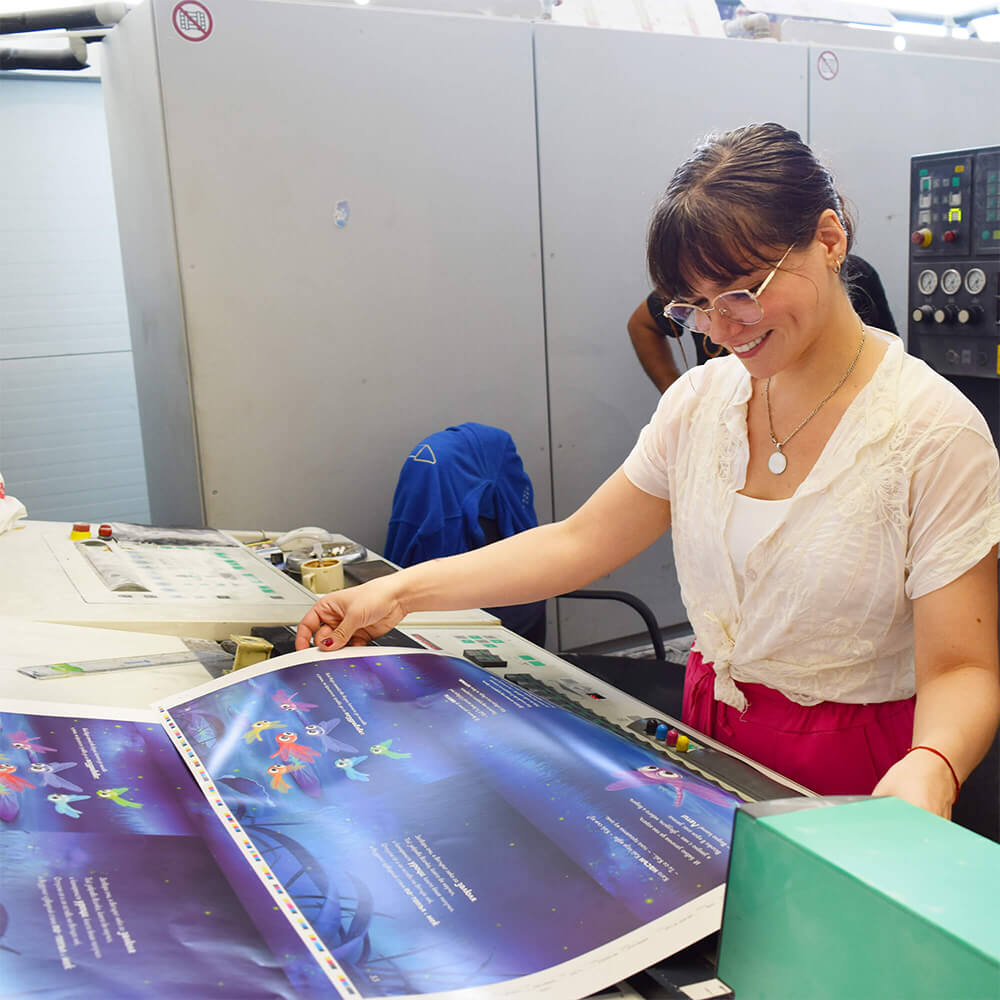Each page is printed using large-scale machines, operated by a team of specialists who carefully monitor the process to ensure flawless results—free of lines, smudges, or imperfections on the text and illustrations.